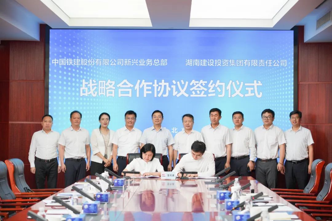6月19日下午,中国铁建股份有限公司新兴业务总部(以下简称新兴业务总部)与湖南建设投资集团有限责任公司(以下简称湖南建投集团)在京签署战略合作协议。新兴业务总部党委书记、总经理贾洪,湖南建投集团党委书记、董事长蔡典维出席签约活动,并共同见证协议签署。