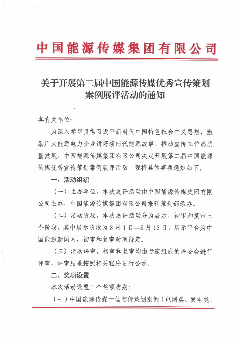 关于开展第二届中国能源传媒优秀宣传策划案例展评活动的通知