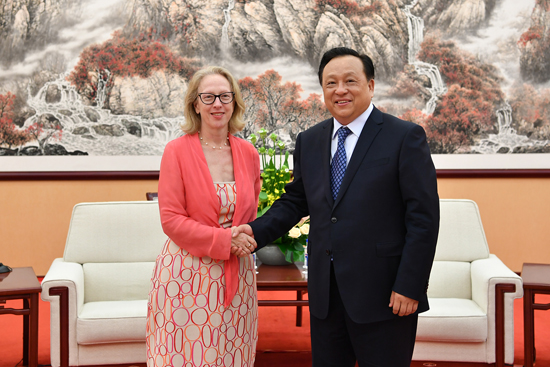 8月8日,中国石油天然气集团有限公司总经理侯启军会见加拿大驻华大使梅倩琳,双方就能源领域合作、绿色低碳转型等议题交换了意见。万军参加会见。(金添)