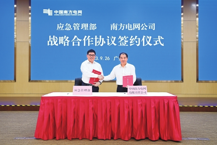 9月26日,应急管理部与南方电网公司签署战略合作协议。赖增鹏摄