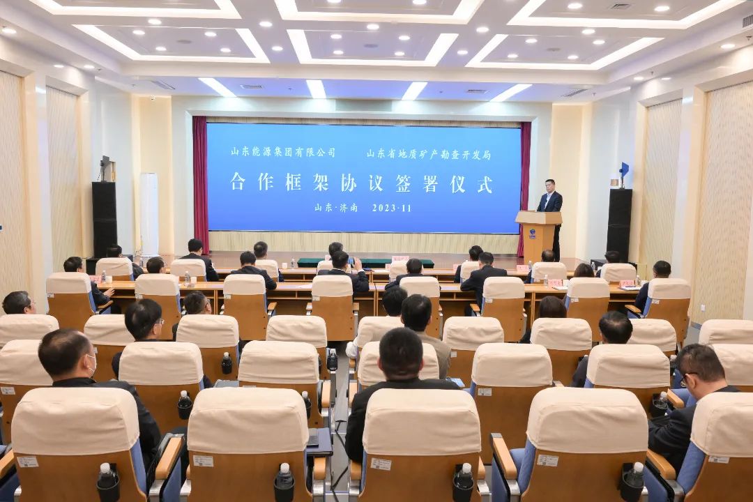 山东省地矿局党委副书记、一级巡视员倪军主持签约。山东能源集团党委常委、副总经理张若祥,山东省地矿局党委常委、副局长侯新文,分别代表双方签订合作框架协议。