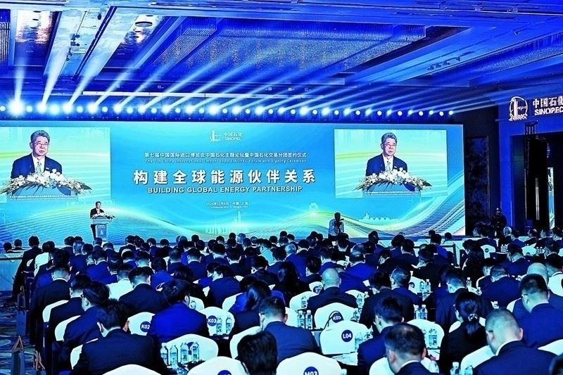 11月5日,第七届中国国际进口博览会暨虹桥国际经济论坛开幕式在国家会展中心(上海)举行。中国石化连续7年在进博会期间举办专场活动,11月4日在上海举办了第七届中国国际进口博览会中国石化主题论坛暨中国石化交易分团签约仪式,论坛以“构建全球能源伙伴关系”为主题,邀请全球能源企业高级管理者和业界知名专家,聚焦全球能源转型与能源合作,探讨共建绿色低碳发展的开放生态。集团公司党组书记、董事长马永生出席并致辞。