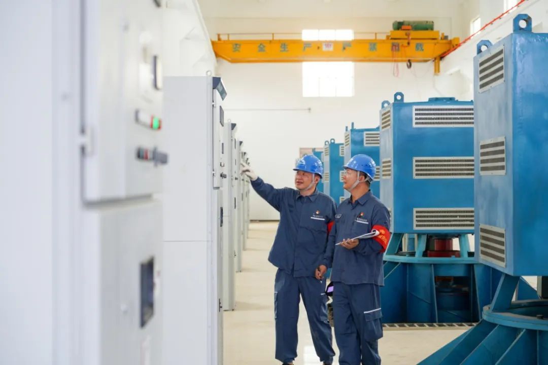 南方电网广东湛江雷州供电局客路供电所营销服务班主动上门,对客路镇自来水厂进行专项用电服务。班组人员细致检查自备发电机、水泵等关键设备运行状态。(陈湛 李皆瑶 摄)