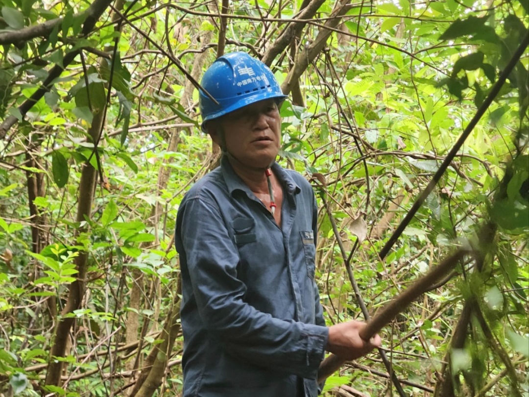 南方电网海南电网输电分公司三亚基地工作人员对110千伏线路廊道下的树障隐患进行清理。(陆昌虎 摄)