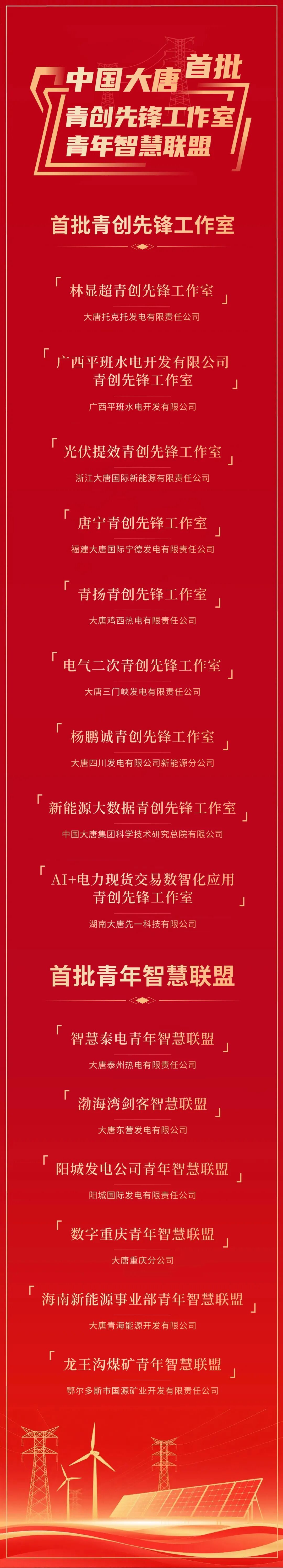 为贯彻落实青年创新行动部署要求,集中展示青年创新创效风采,激励广大青年立足本职岗位建功立业,中国大唐团委组织开展首批“青创先锋工作室”“青年智慧联盟”创建命名。通过一年时间的创建与实践,经过 “基层申报→二级企业把关→集团团委 + 科创部联合评审→全网公示”4重严格关卡,最终有15个优秀集体从125个青创“种子团队”突出重围,成为首批 “官方认证” 的青年创新标杆!