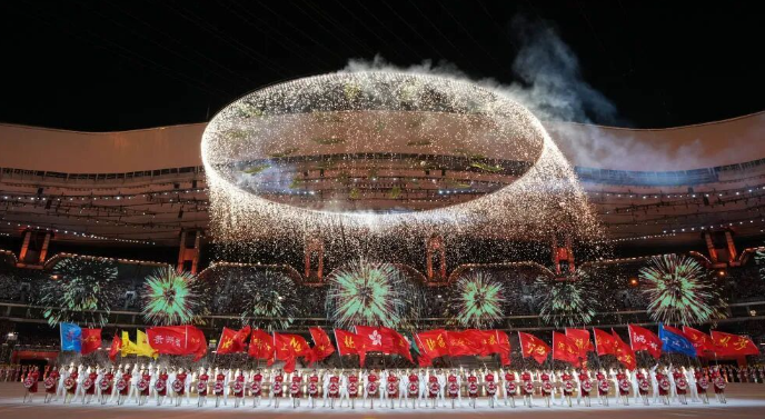 开幕式运用AIGC(人工智能生成内容)、AR(增强现实)、全息投影等技术,实现非遗文化与现代科技的跨界融合;在8万人体育场营造影院级音效,灯光设计结合激光、威亚等技术,构建动态光影效果。南方电网公司全力保障这场科技与文化融合的视听盛宴,有力保障开幕式场馆24万米电力线路、3万个灯头“零停电、零闪动”。