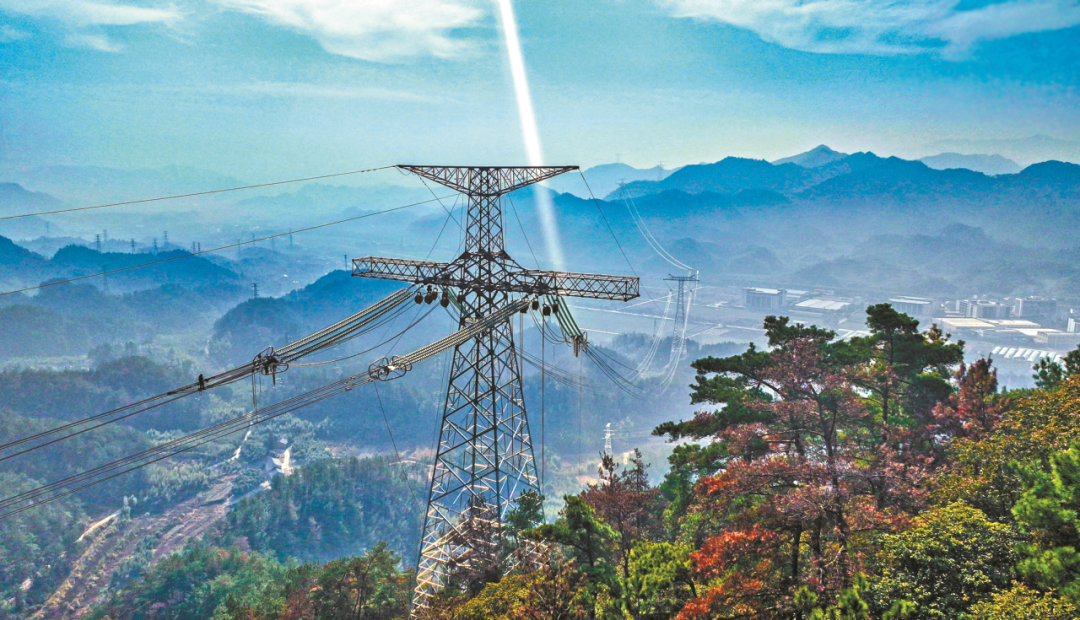 国网浙江电力建设人员在甘肃—浙江±800千伏特高压直流输电工程(临安段)开展导线安装和调整作业