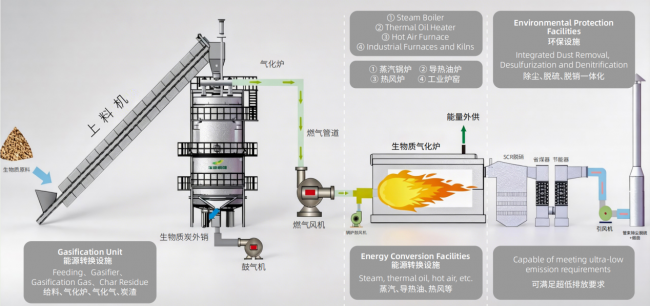 宝杰科技生物质气化供热(蒸汽/导热油)系统图。
