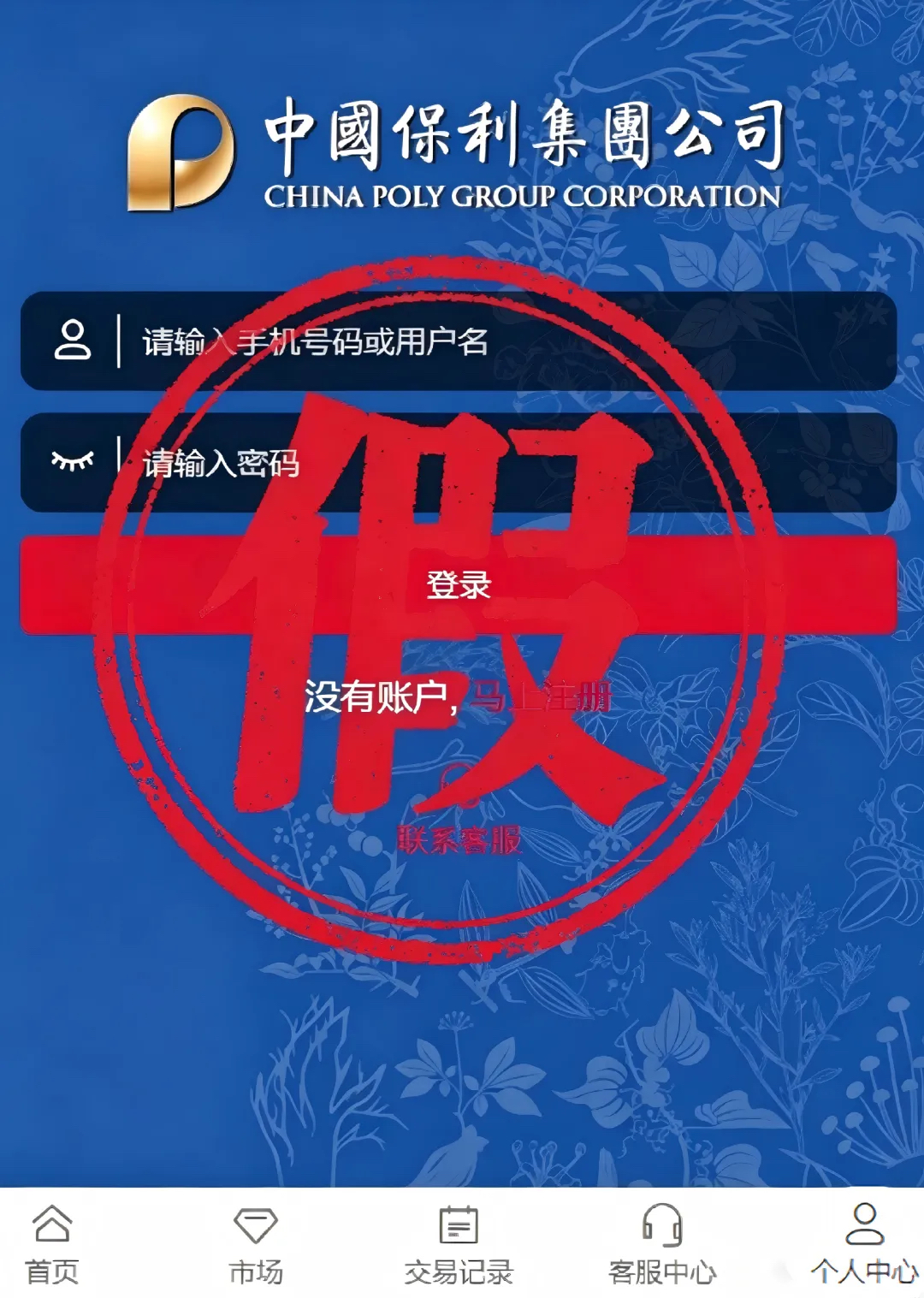 假冒保利集团设立的虚假交易平台。图自“中国保利”公众号