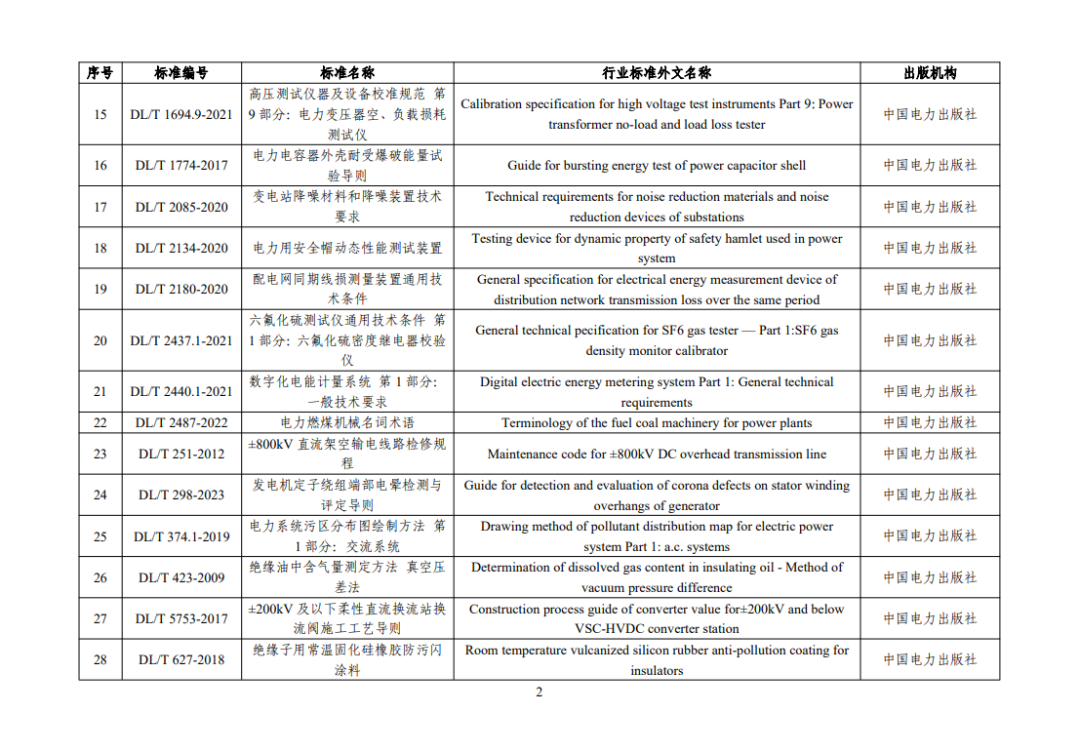 2.行业标准外文版目录
