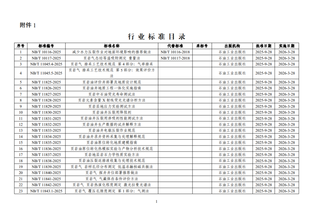 附件: 1.行业标准目录