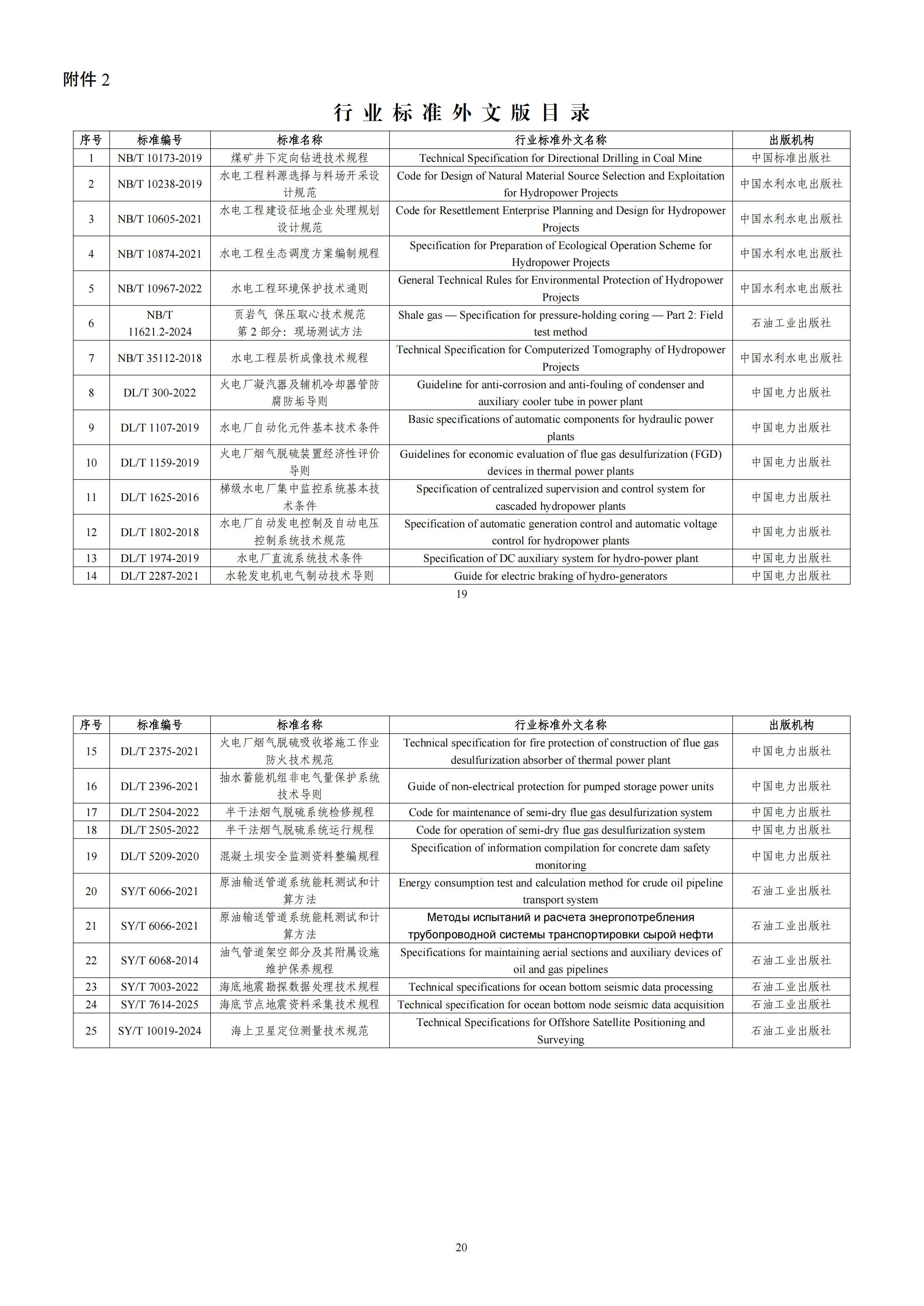 2.行业标准外文版目录
