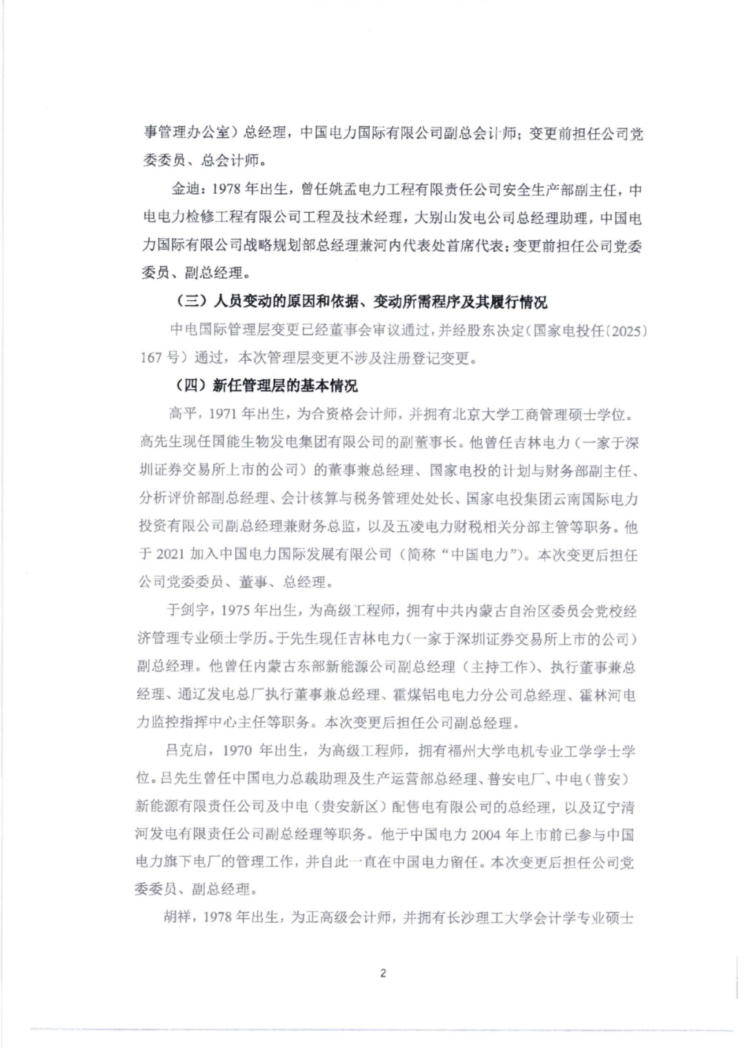本次变更已经董事会审议通过,并经股东(国家电投任〔2025〕167号)通过,本次管理层变更不涉及注册登记变更。