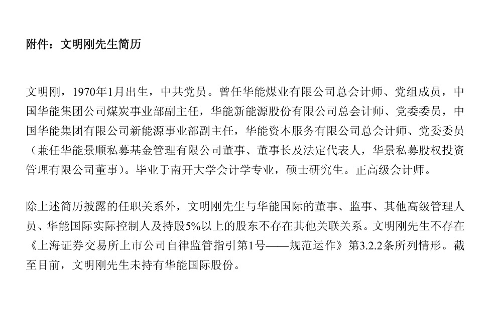 华能国际发布公告称,公司董事会于7月10日召开第十一届董事会第十三次会议。会议审议并一致通过了《关于聘任公司总会计师的议案》,同意聘任文明刚先生为公司总会计师。
