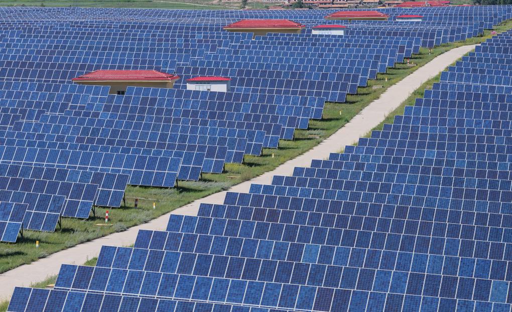 光伏板整齐排列在位于河北张家口的国家级可再生能源示范区内(8月18日摄)。新华社记者李贺摄