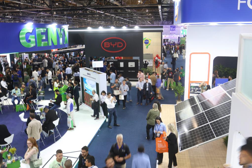 8月30日在巴西圣保罗拍摄的第十届南美国际太阳能展现场,来自中国的光伏技术装备成为展会焦点。新华社发(拉赫尔·帕特拉索摄)