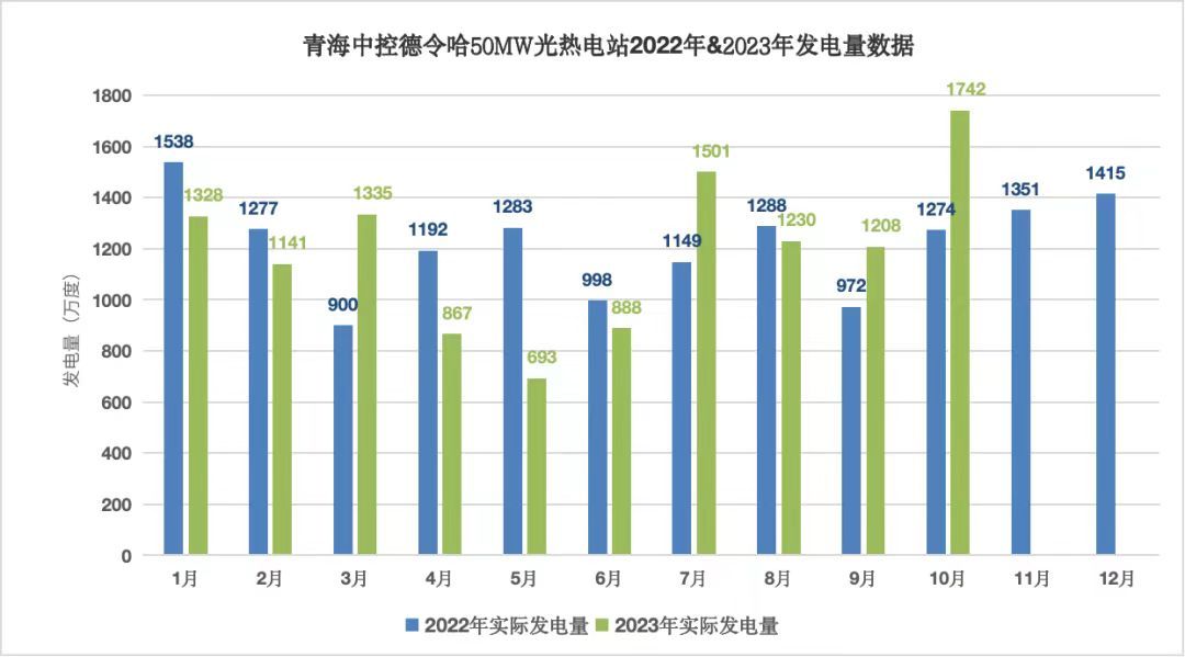 截至10月31日24时,青海中控德令哈50兆瓦光热电站当月发电量达到1742万千瓦时,电站2023年1—10月累计发电量达到1.19亿千瓦时,创下电站投运以来历年同期的最高纪录。