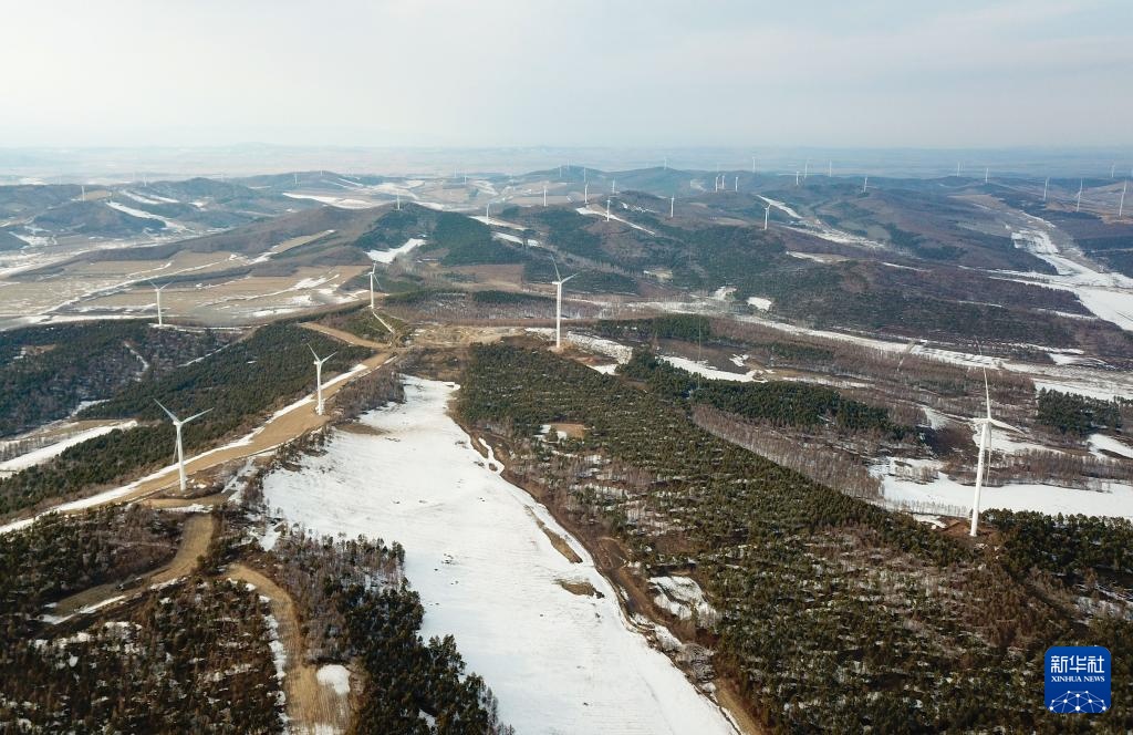 这是3月27日拍摄的依兰鸡冠山风电场四期项目的部分风电机组。
