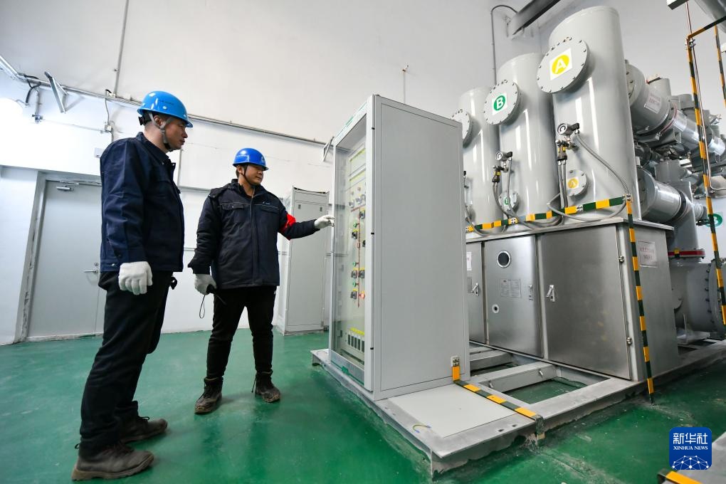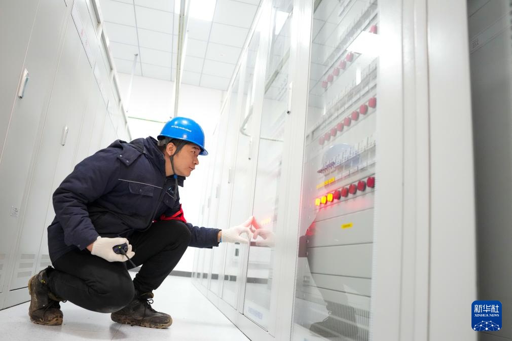 3月28日,在依兰鸡冠山风电场四期项目的变电站,工作人员在继电器保护室进行检查。