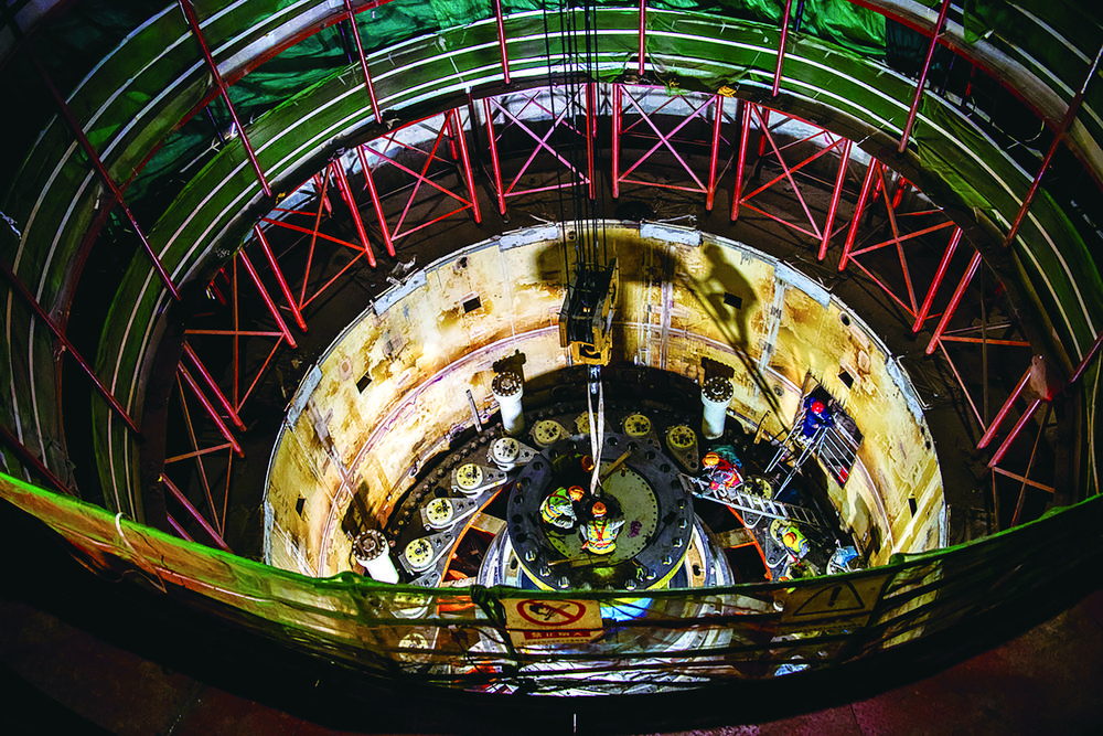 3月24日,玛尔挡水电站地下厂房正在进行3号机组中心孔补气装置中法兰吊装 国家能源集团供图