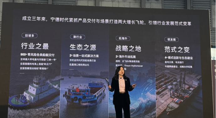 “方案使电动船舶的运营效率大幅提升,既降低了运营成本,又提升了船舶安全性和管理便利性,真正让绿色航运像‘开电车’一样轻松、安全、高效。”宁德时代介绍。