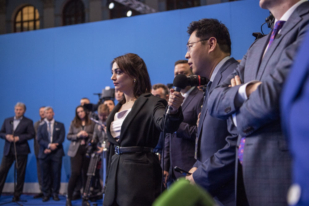 3月18日,在俄罗斯首都莫斯科,新华社记者向俄总统普京提问。新华社记者曹阳摄