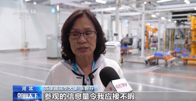 苏里南驻华大使 张碧芬:参观的信息量令我应接不暇。这是我第一次来河北,行程非常有趣,内容都与绿色发展和清洁能源有关。在乘高铁来的路上,我们看到了风力发电机,还有太阳能板。这里确实是实现绿色发展的门户。