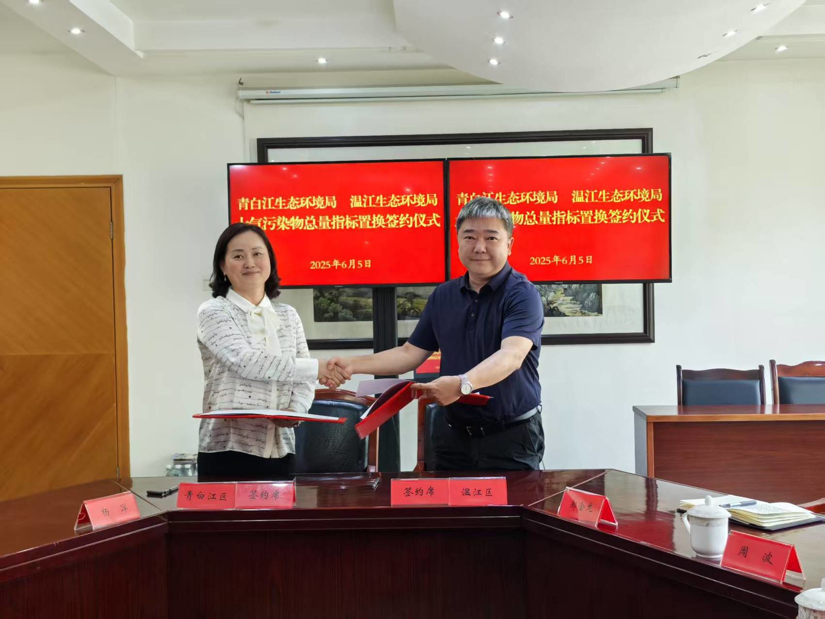 成都市温江区与青白江区签订《大气污染物总量指标批量互换协议》