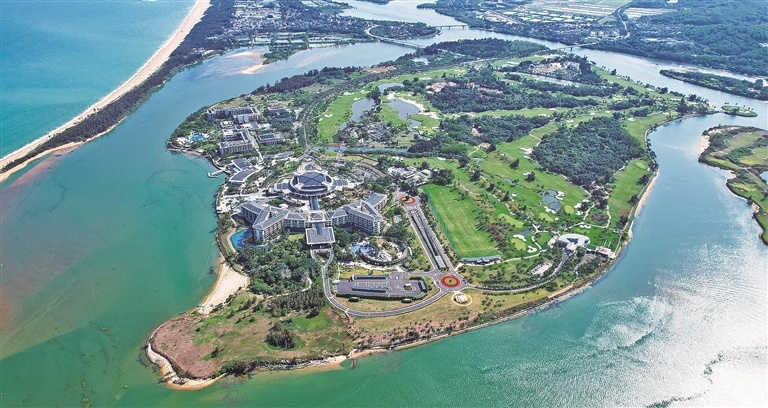 鸟瞰博鳌零碳示范区所在地海南省琼海市博鳌镇东屿岛。新华社发