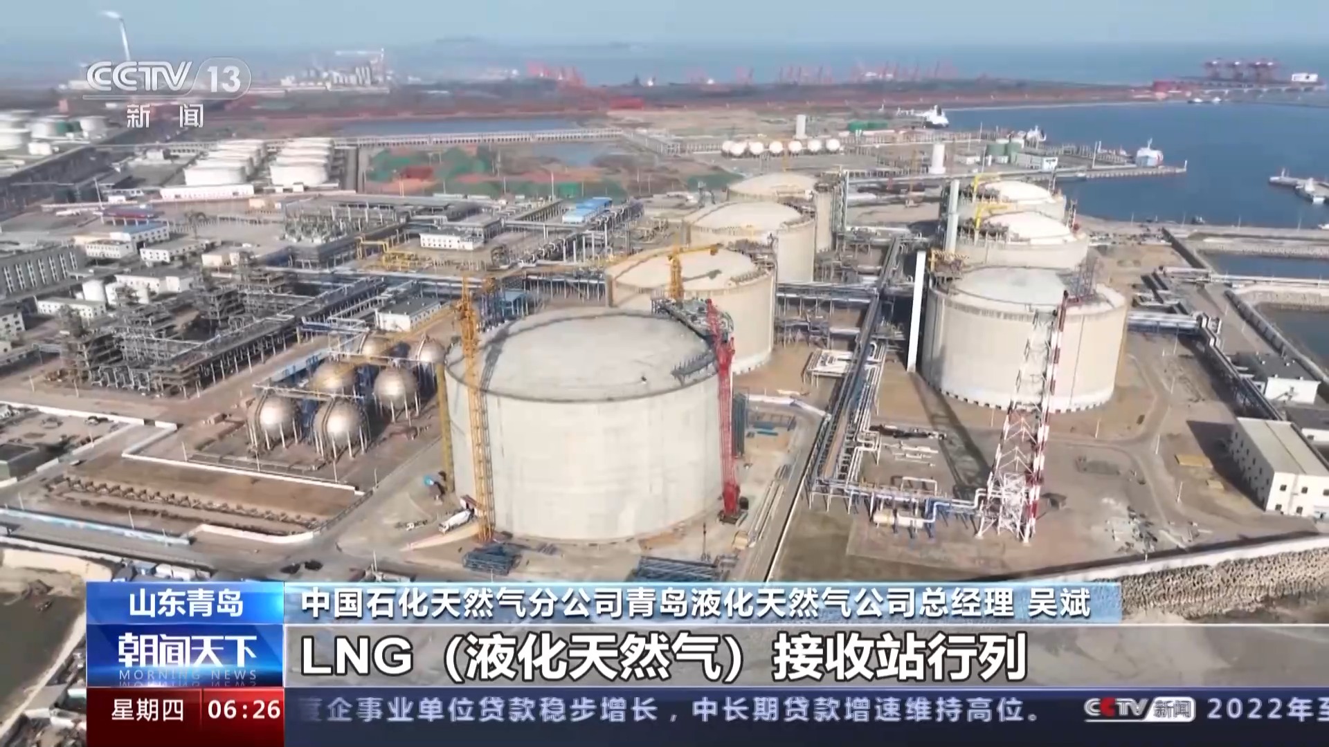 中国石化天然气分公司青岛液化天然气公司总经理 吴斌:这座储罐的顺利投用,也使青岛LNG(液化天然气)接收站年接转能力提升至1100万吨、年供气能力突破至165亿立方米,正式迈入千万吨级LNG(液化天然气)接收站行列。