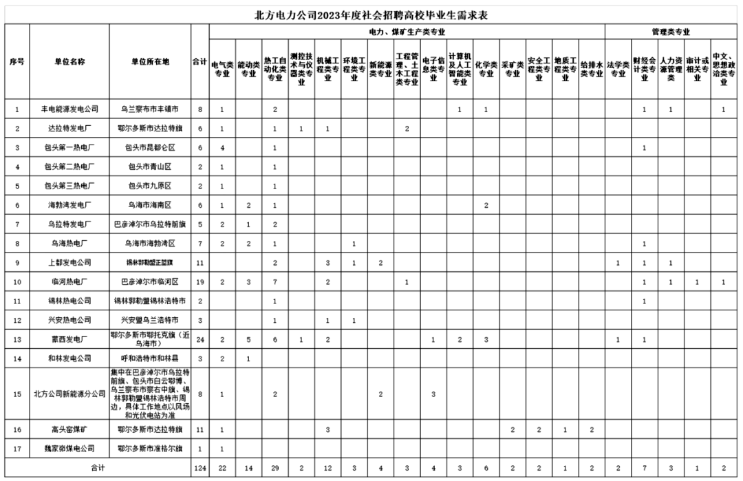 为加强北方公司人才队伍建设,补充所属单位急需的生产经营人员,根据北方公司发展需要,现开展2023年度高校毕业生社会公开招聘工作。
