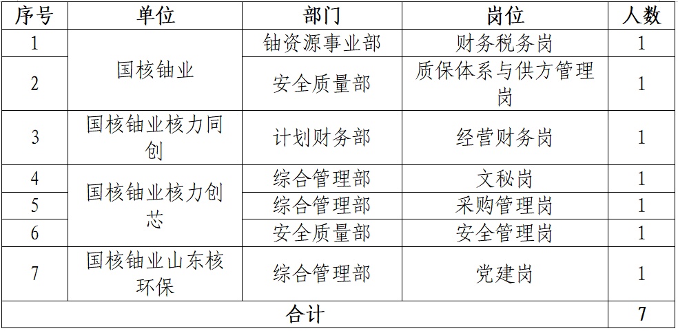 具体岗位职责和任职资格条件详见“国聘”平台国核铀业招聘页面。