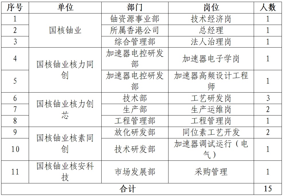根据国核铀业经营发展需要,国核铀业本部及部分所属企业面向国家电投集团系统内外公开选聘工作人员。具体事宜公告如下: