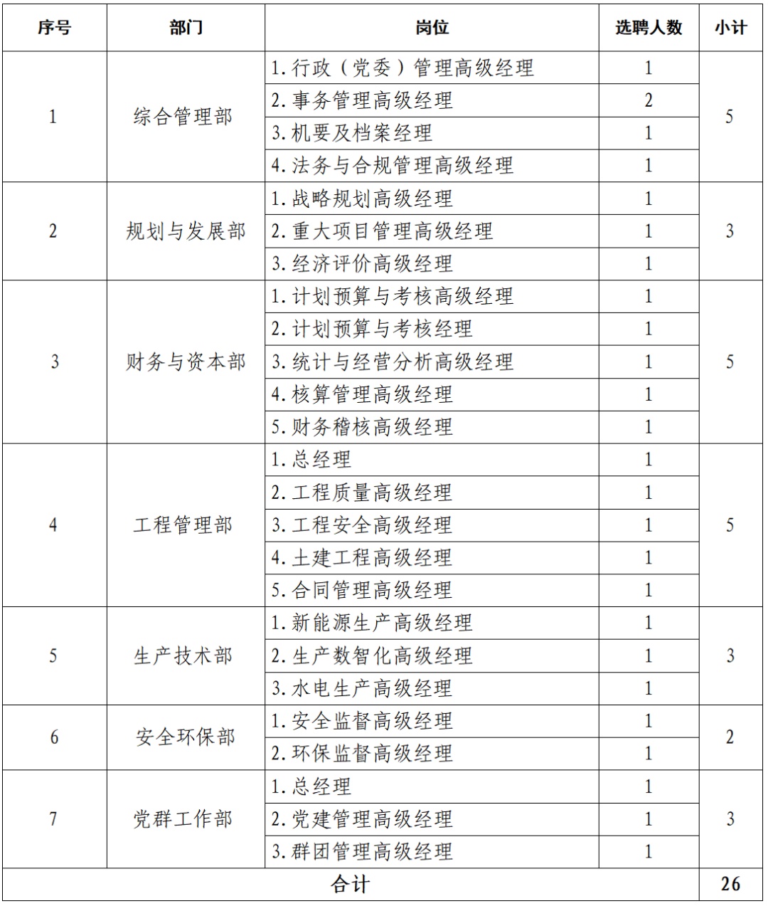 水电产业平台公司筹备组(简称:筹备组)根据工作需要,现面向国家电投集团系统内公开选聘筹备组相关岗位人员,具体事项公告如下: