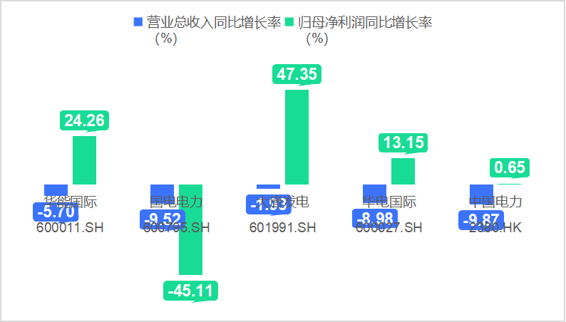 聚焦业绩增速,上半年五大电力上市公司营收同比增长率全部下降;盈利成长性方面,华能国际、大唐发电、华电国际、中国电力均出现不同程度的增长。