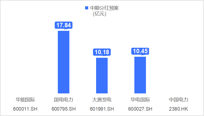 为持续加强投资者回报、构建长期共赢机制,在此次半年报披露的同时,国电电力、大唐发电、华电国际均发布中期分红预案,其中国电电力分红总额最高,预计达17.84亿元。