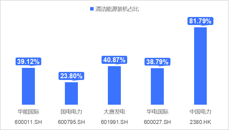 回顾五大电力上市公司的新能源“成绩单”,上半年,清洁能源装机占比均超过20%。