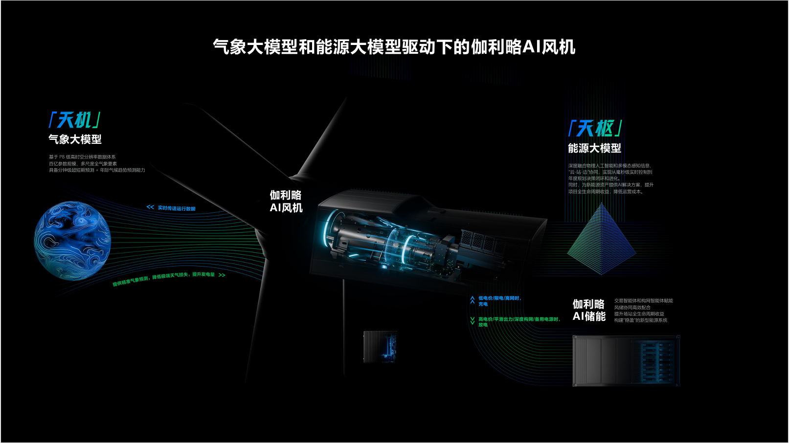 在2025风能展上,远景能源发布了行业首个伽利略AI风机和全球首个伽利略AI风储一体机。这些产品基于“远景天机”气象大模型与“远景天枢”能源大模型,能在3分钟内生成未来15~30天的全球精准预报。娄益民介绍,伽利略AI风储一体机集风机和储能于一体,就像一座独立的小型发电站,在保障可靠性的同时,能让风电场收益提升20%以上。