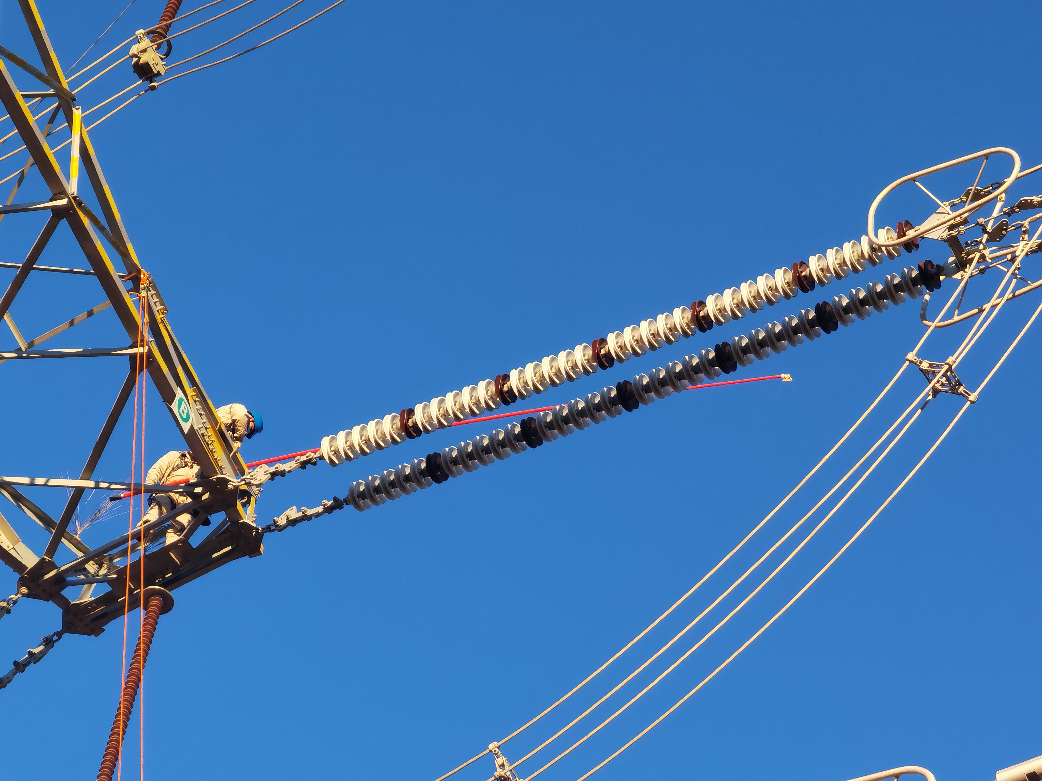 作业现场,设置围栏警戒防护、绝缘设备检测、安全技术交底等一系列安全措施后,“开始工作!”随着工作负责人一声令下,两名穿着屏蔽服的作业人员在挂好安全带后开始登塔。经过两个小时紧张有序的作业,伴随着“报告工作负责人缺陷已消除,确认塔上、线上无遗留物,申请下塔”的声音,标志着本次消缺工作接近尾声。