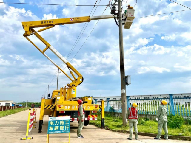 4月20日上午9时,在才都工业园区内,两辆带电作业车有序施工,这是国网抚州市临川区供电公司春检忙碌的现场,也是不停电作业运用的场景之一。