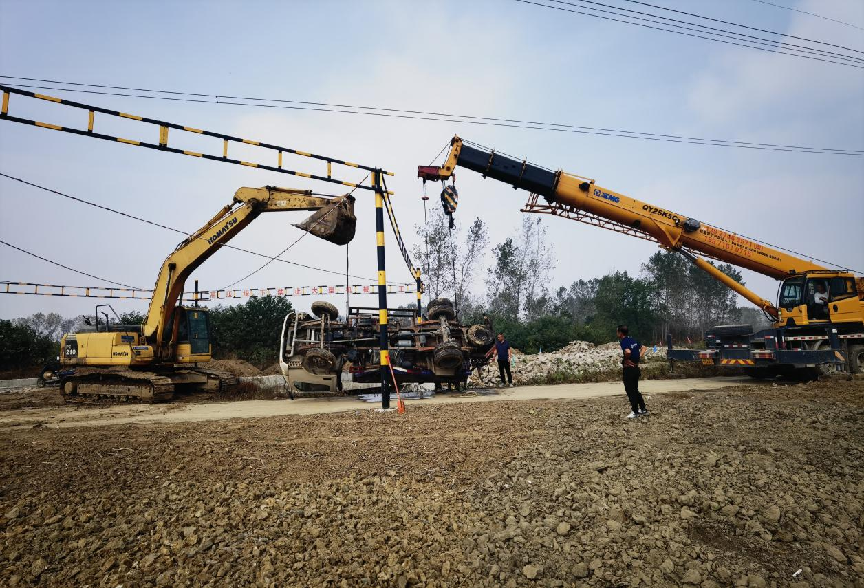 最终,在与车主商量后,他们又紧急调用一辆挖机,由挖机和吊车共同施工,章杨和网格员对施工作业进行全程安全管控,确保作业机械始终与导线保持安全距离。10月14日11时38分,在大家的共同努力下,线下吊车成功将事故车辆吊起,一起220千伏输电线路外破隐患被成功消除。