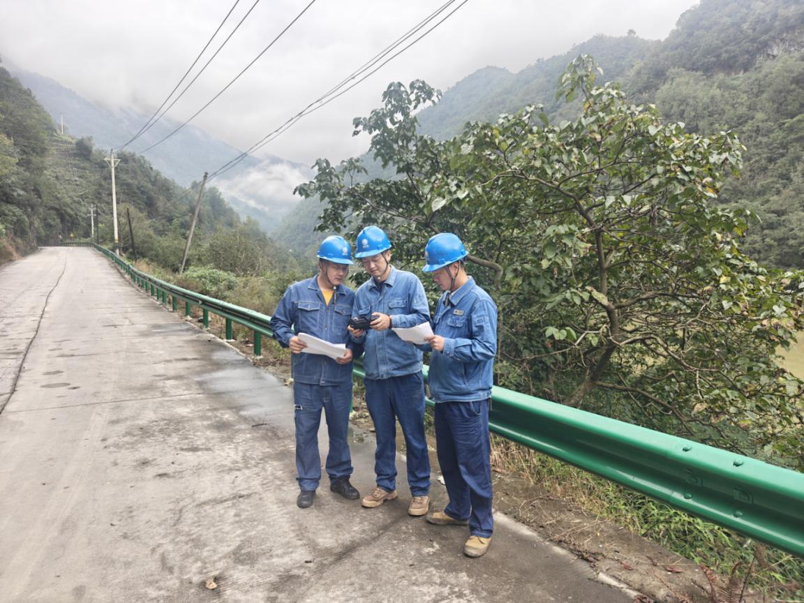 在范坝乡泥泞的山路间,输电运检班队员顶风冒雨前行。雨水浸透衣裤,泥泞裹满鞋靴,却丝毫没有动摇他们的巡线决心。队员通过无人机实时画面发现,10千伏范河线、范电线区段有大树枝接近导线,存在放电风险,立即联系属地政府开展清理;在另一处杆塔基础旁,他们细致清理被雨水冲刷的泥土,仔细检查基础稳固性,全力确保杆塔屹立不倒。