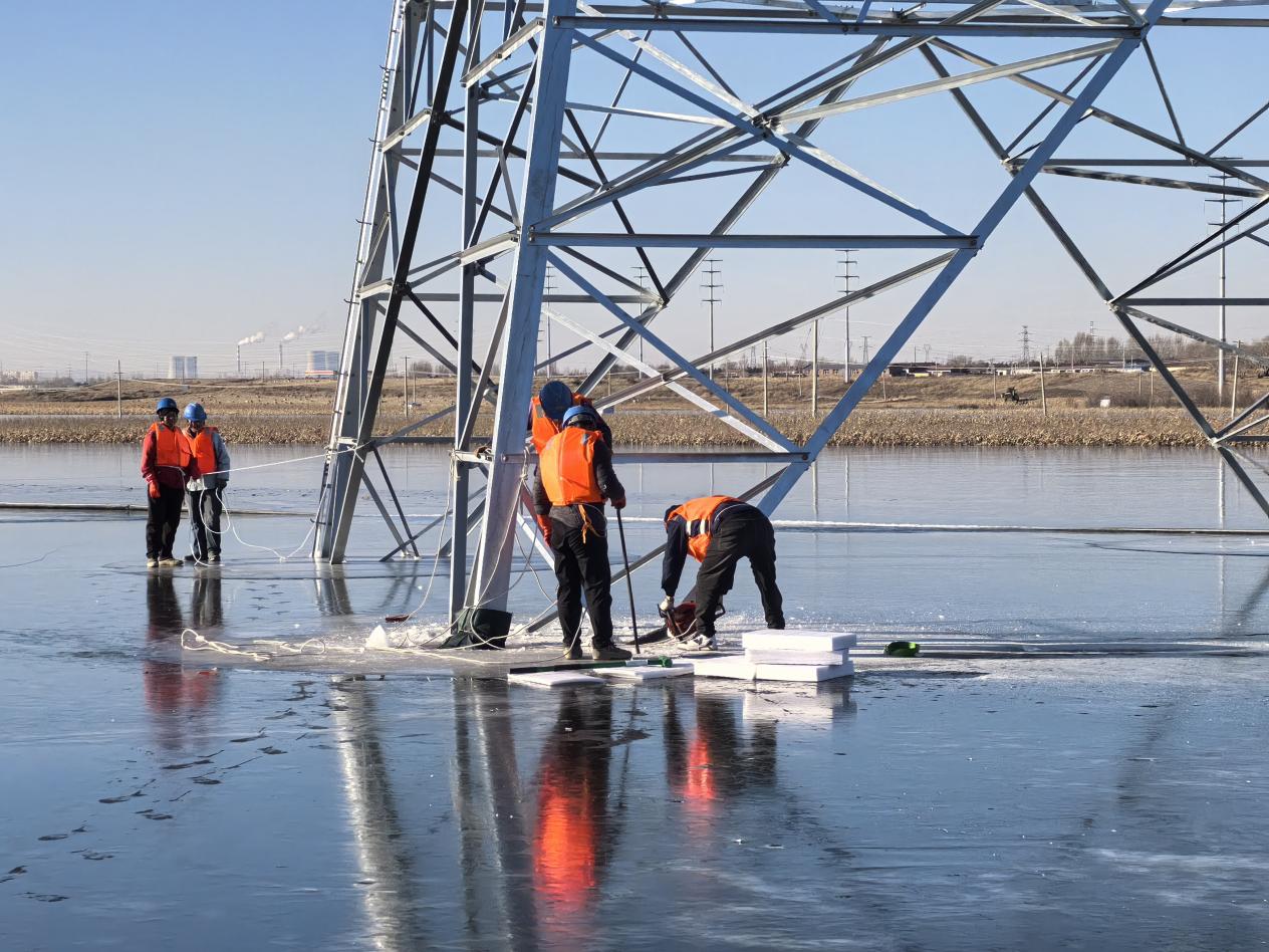 目前,25基涉水涉冰铁塔防护工程已全面竣工。穿上“防护甲”的铁塔稳稳屹立于冰面之上,成功化解冬季冻胀隐患,为迎峰度冬筑牢安全基石,同时也为极端天气下的杆塔防护积累了宝贵实践经验。