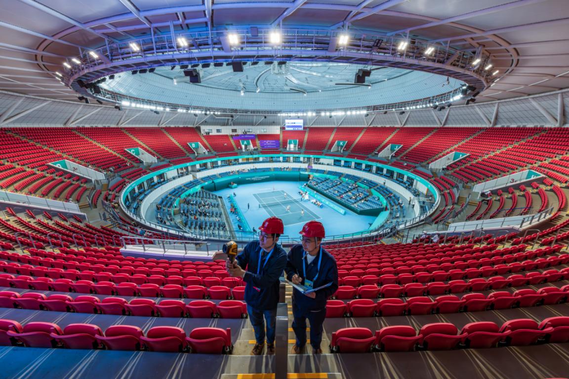 国网杭州供电公司员工对标亚运保电标准,对比赛场馆开展电力保障工作。丁豪 摄