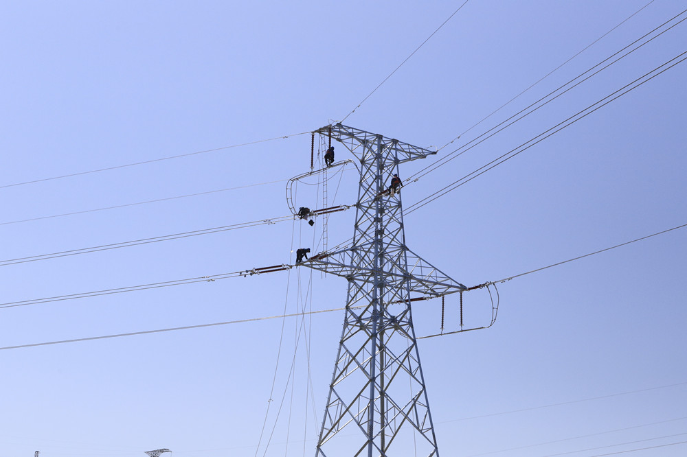 6月7日,盐湖南风电220千伏送出工程建设现场。(胡世杰摄)