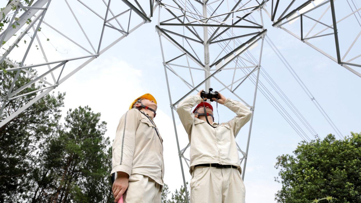 国网重庆北碚供电公司输电运检中心“塔长”和重庆北碚区东阳街道西山坪村“塔长”开展联合巡线。(张强摄)