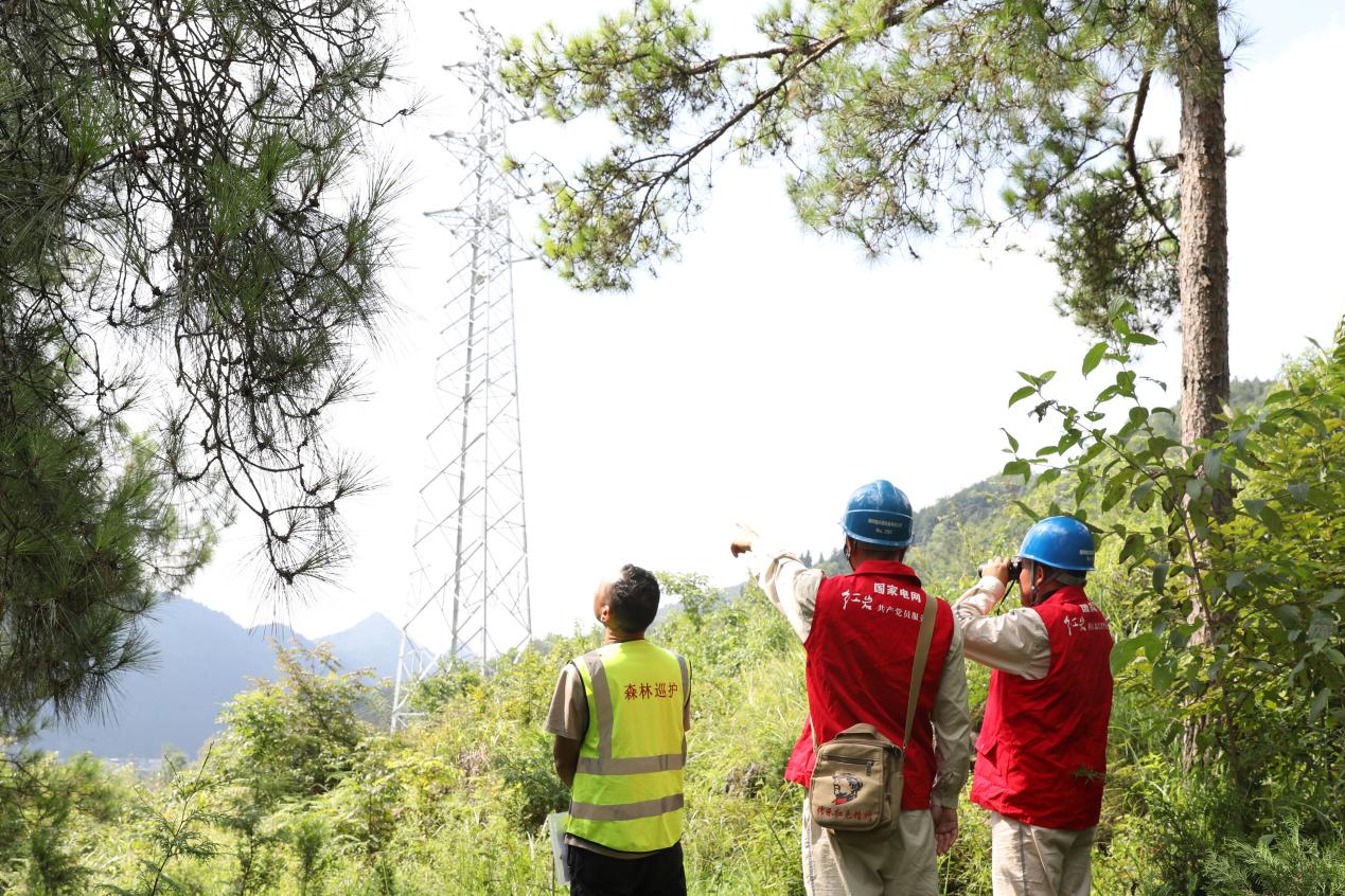 国家电网红岩(酉阳营销)共产党员服务队联合重庆酉阳县桃花源街道护林员开展防山火特巡。(庞涛丹 摄)