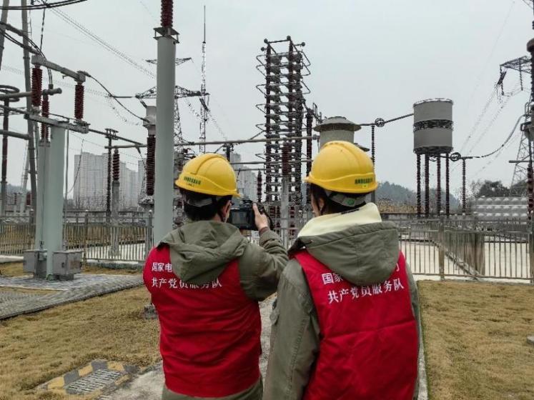 宜都换流站运维人员在全国两会保电期间对投入的滤波器进行测温。张珉睿摄