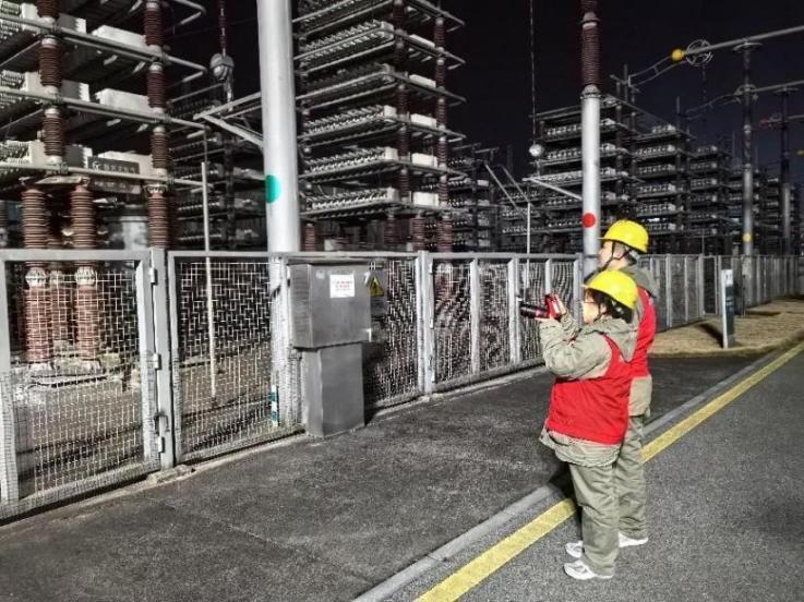 葛洲坝换流站运维人员开展特殊巡视和红外测温工作。刘佑迪摄