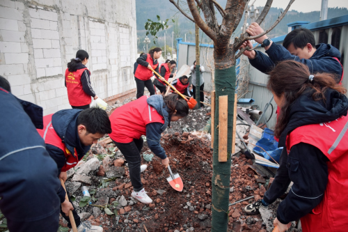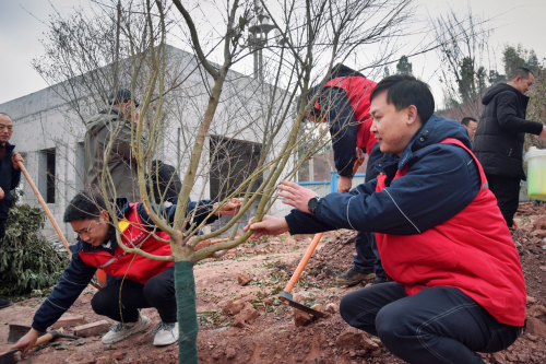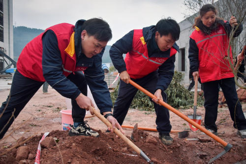 “树苗要扶正,新土要踩实……”来自全县各机关单位的职工们不时地互相交流着种植技术,整个植树现场一派热火朝天的“农忙”景象。该公司红岩共产党员服务队队员们热情高涨、干劲十足,挥锹培土、扶直苗木、浇水灌根,井然有序地将一株株树干植入土中,共同种下一颗颗绿色的希望。现场洋溢着团结协作、昂扬向上的融洽氛围。经过一个多小时的劳动,香樟、桂花、红梅、水杉等300余株苗木错落有致、迎风挺立,形成了一道充满盎然生机的新风景线。